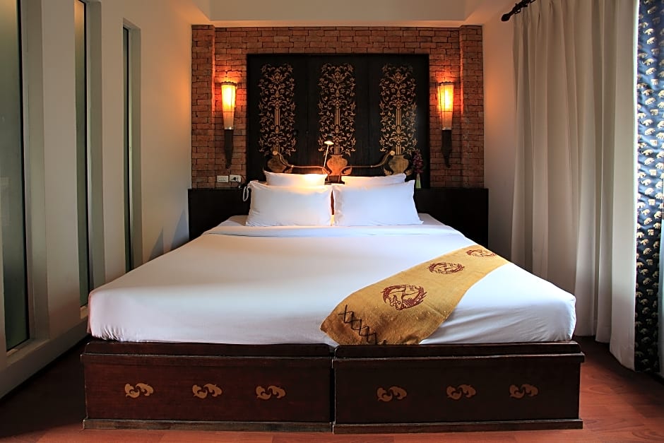 Surrounded with a tropical garden, this room features handmade pieces of artworks.